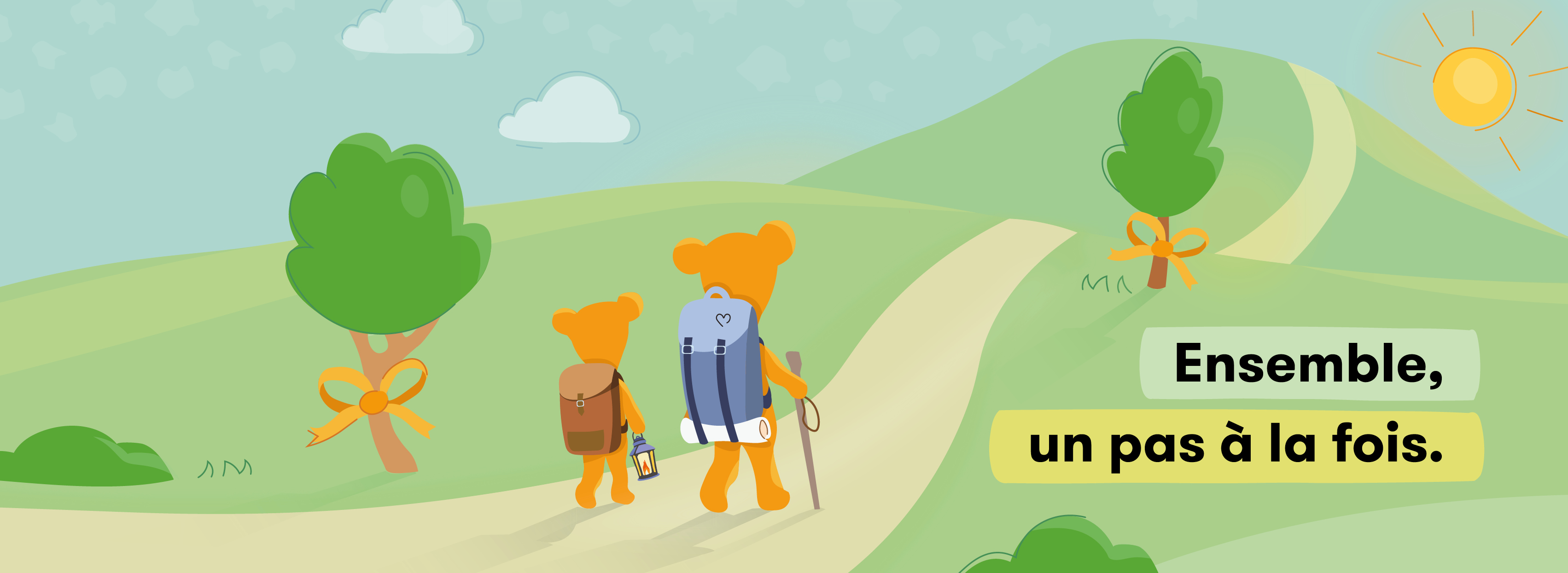 Ce symbole est utilisé tant durant nos thérapies avec les jeunes que par notre équipe de prévention et formation, notamment dans l’imagerie du livre Un pas à la fois avec Lou. Cette illustration représente également les sommets franchis et à franchir par Marie-Vincent, progressivement, pour bâtir une communauté protégeante et contribuer à un monde sans violence. Ensemble, un pas à la fois.