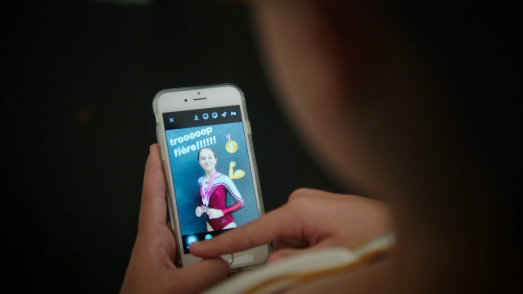 Liliane regarde des photos sur son cellulaire afin de choisir laquelle publier sur les réseaux sociaux. Chaque photo amène Liliane à avoir une pensée négative envers elle-même. Elle décide de changer son apparence (vêtements et maquillage) pour prendre une nouvelle photo, mais n’est pas satisfaite du résultat. Finalement, elle choisit de publier avec fierté une photo d’elle avec une médaille.