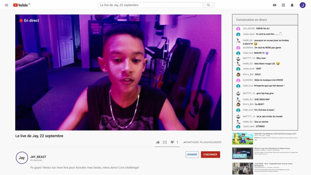 Qu’est-ce qui se passe généralement dans les diffusions en direct que tu regardes ou que tu fais?