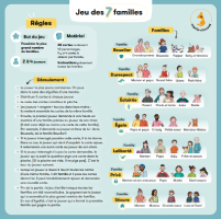 Jeu des 7 familles Les noms des familles dans ce jeu sont inspirés de la Convention relative aux droits de l’enfant des Nations Unies. Chaque famille représente un droit fondamental des enfants, soulignant l’importance de l’égalité et de la justice, peu importe l’origine, la religion, la langue ou la situation familiale de l’enfant. Ce jeu aide les enfants à comprendre et à revendiquer leurs droits pour survivre, vivre, se développer, s’épanouir et réaliser leur plein potentiel. Téléchargez