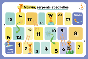 Jeu Marvin, serpents et échelles Le jeu Marvin, serpents et échelles est un jeu de réflexion sur les relations saines et égalitaires, adapté du jeu classique. Il existe une version pour les 6-9 ans et une autre pour les 10-12 ans. Téléchargez